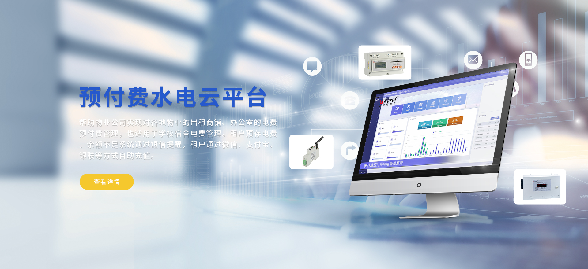 安科瑞提供的解決方案包括Acrel-EIoT能源物聯網云平臺、變電所運維云平臺、安全用電管理云平臺、環保用電監管云平臺智慧消防云平臺、能源管理云平臺、工業企業能源管控平臺、遠程預付費云平臺、餐飲油煙監管云平臺、電動汽車/電瓶車充電樁收費管理云平臺、電力監控/無線測溫系統、電能質量治理系統、電氣火災監控系統、消防設備電源監控系統、防火門監控系統、應急照明和疏散指示系統、智能照明控制系統、醫用隔離電源絕緣監測系統等,幫助用戶實現能源智能化、可視化、精細化管理,提高用能效率和用能安全,為企業節能降耗和實現能源數字化建設提供數據服務。